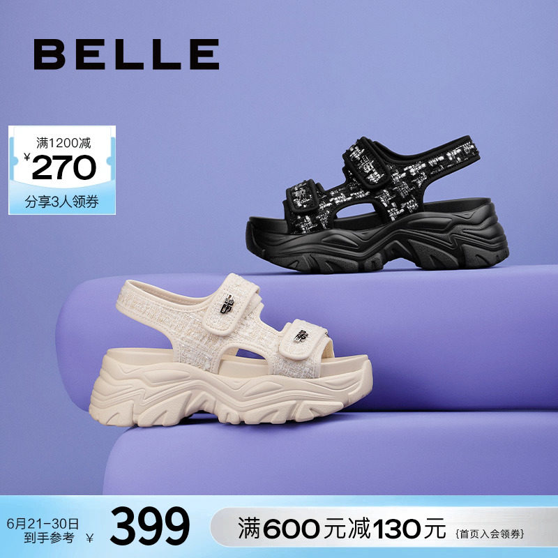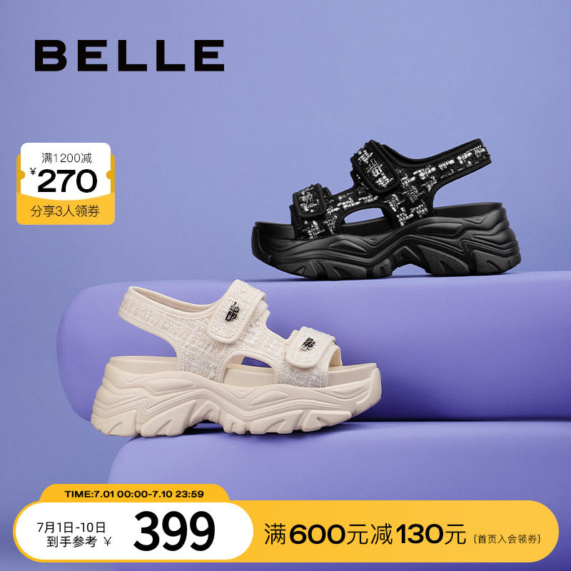 券 120元销量400百丽小香风运动凉鞋女鞋2023夏季新款休闲厚底沙滩凉鞋B1274BL3