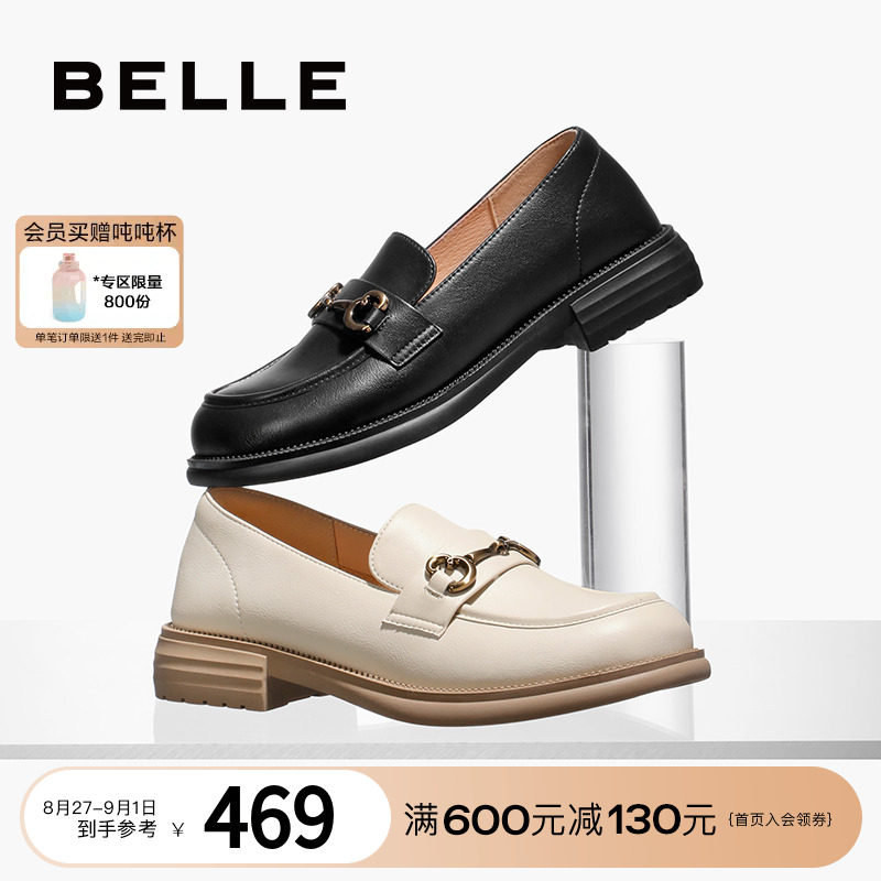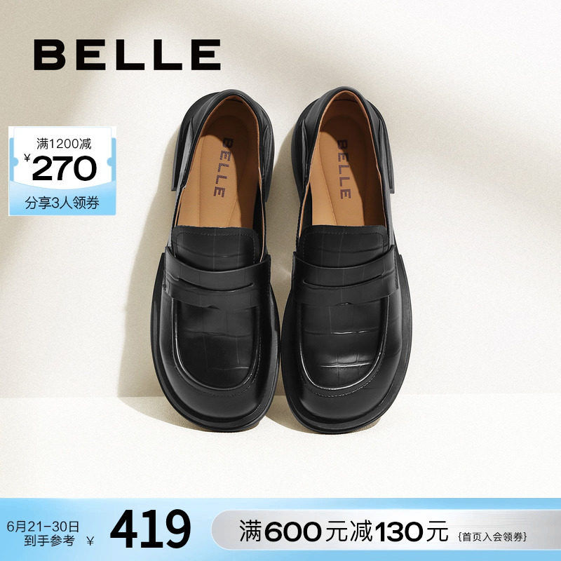 券 120元销量400百丽复古乐福鞋女商场女鞋平底鞋子黑色小皮鞋单鞋女Y2Z1DCA2