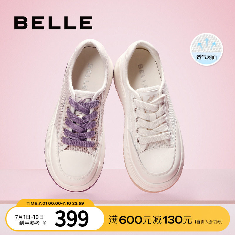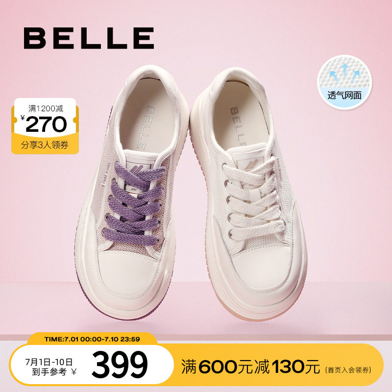 券 120元销量3000百丽透气网面小白鞋面包鞋2023夏季新款女鞋厚底休闲鞋B1175BM3