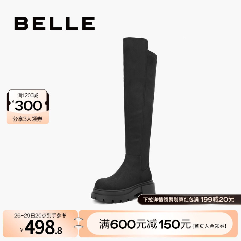 券 140元销量1000百丽过膝弹力靴2023冬季新款女靴子长筒靴高长靴瘦瘦靴B1625DC3