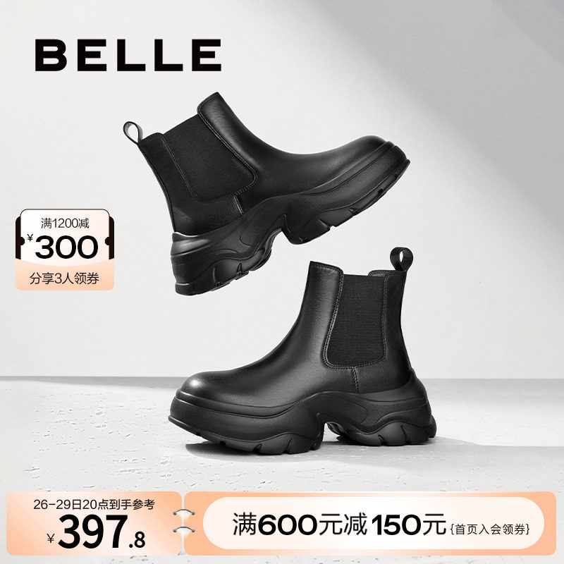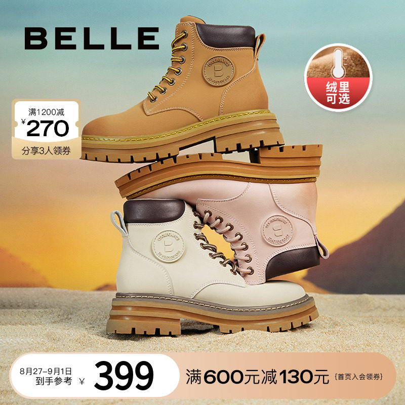 券 140元销量500百丽女靴鲸鱼靴加绒马丁靴2023冬季新款靴子运动靴真皮短靴