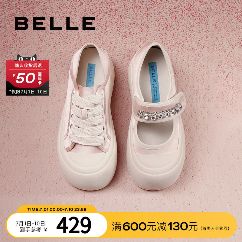 券 120元销量400百丽厚底帆布鞋女2023秋季新款女鞋面包鞋商场玛丽珍鞋Z7M1DCQ3