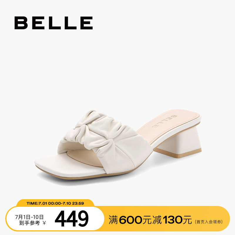 券 120元销量300百丽气质一字拖女2023夏季新款外穿拖鞋女鞋商场优雅凉拖Z6Q1DBT3