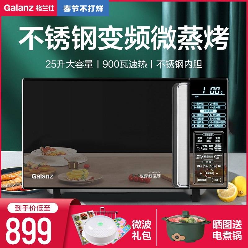 券 840元销量100格兰仕900W不锈钢微波炉家用智能变频微蒸烤箱一体官方旗舰25L