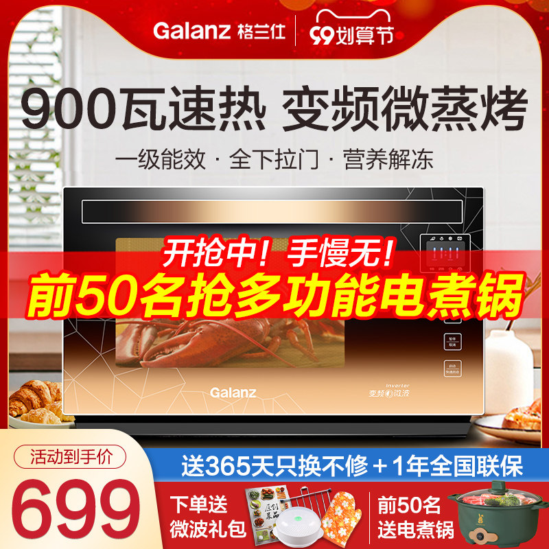 券 420元销量200格兰仕变频微波炉烤箱一体机不锈钢胆1级能效光波炉下拉门A7B3