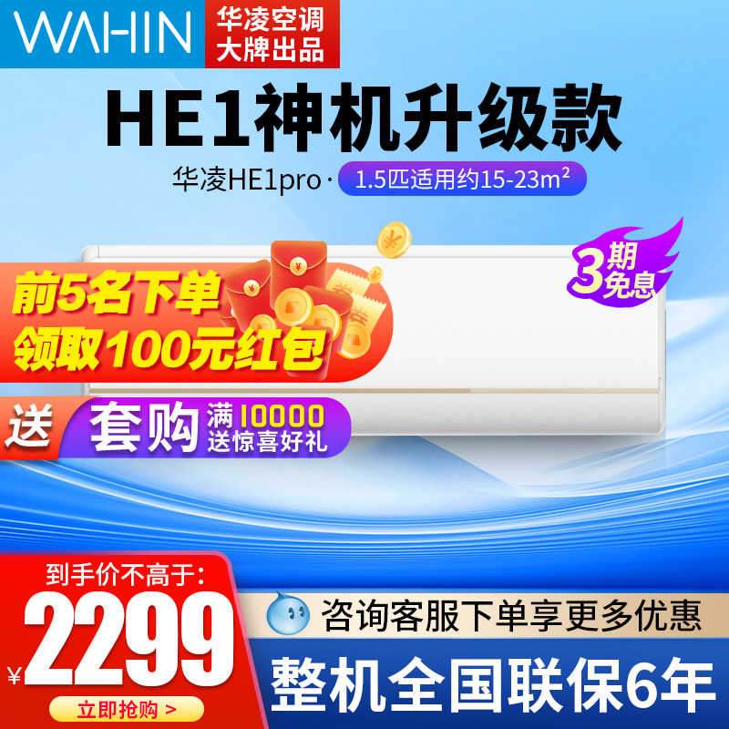 券 300元销量0华凌神机空调35n8he1大1匹一级能效1.5P变频家用挂式冷暖两用挂机
