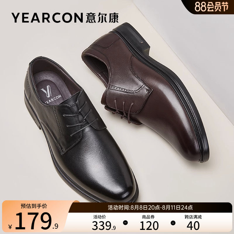 券 160元销量1000意尔康男鞋2022新款男士商务正装皮鞋新郎婚鞋英伦风单鞋工装鞋