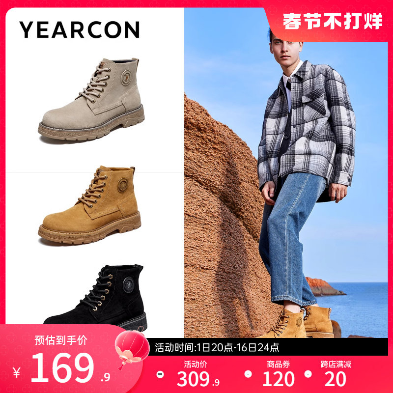 券 140元销量700意尔康男鞋秋冬季登山马丁靴大黄靴男士工装靴英伦风单靴磨砂