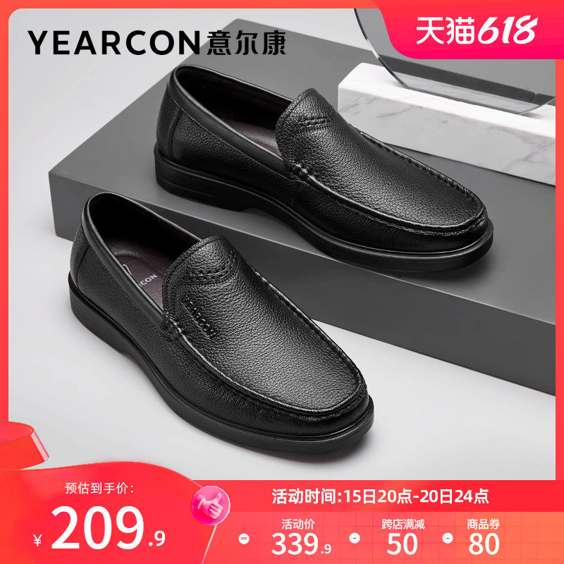 券 90元销量100意尔康男鞋羊皮英伦风商务休闲皮鞋男士一脚蹬单鞋真皮乐福鞋爸爸