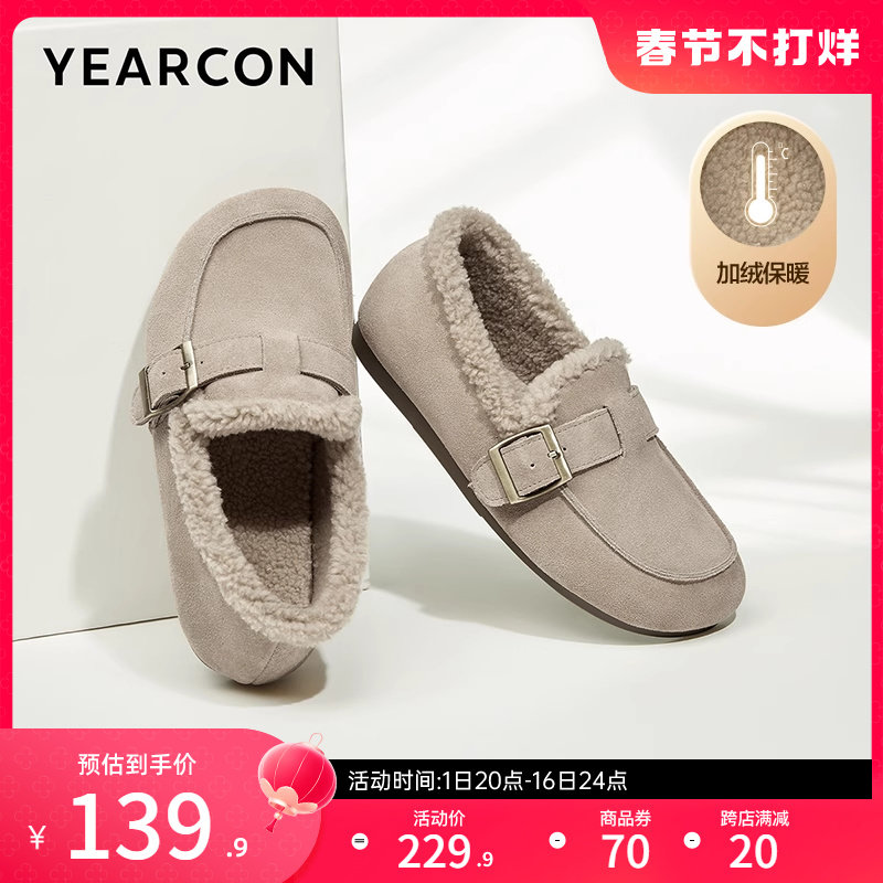 券 80元销量400意尔康女鞋冬季低帮雪地靴加绒棉鞋懒人豆豆鞋外穿平底磨砂毛毛鞋