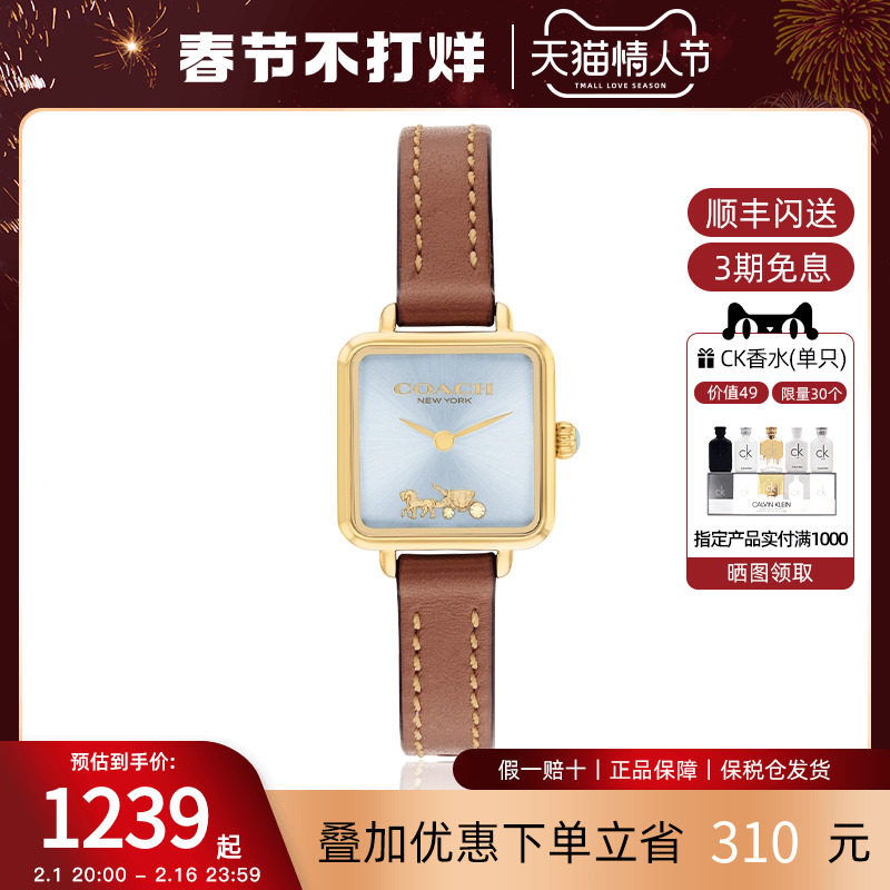 券 50元销量1COACH蔻驰女表马车图案皮带石英表小方糖手表美拉德女友新年礼物
