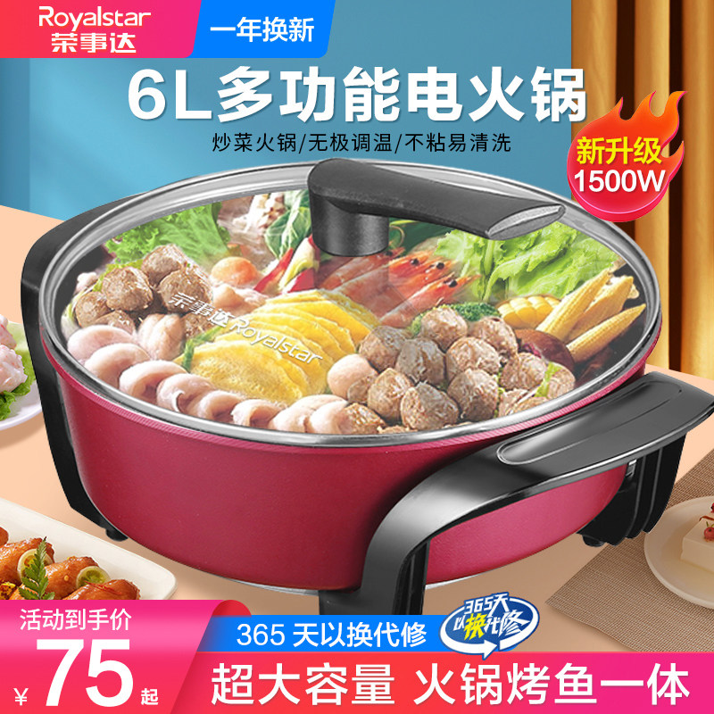 券 20元销量100荣事达电火火锅家用插电蒸煮煎炒一体式多功能电炒锅炒菜电热煮锅