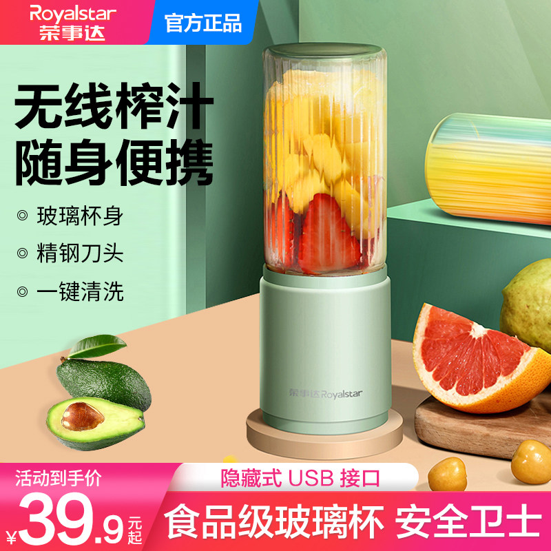 券 14元销量500荣事达榨汁杯家用无线小型充电正品随身便携式玻璃电动炸汁榨汁机