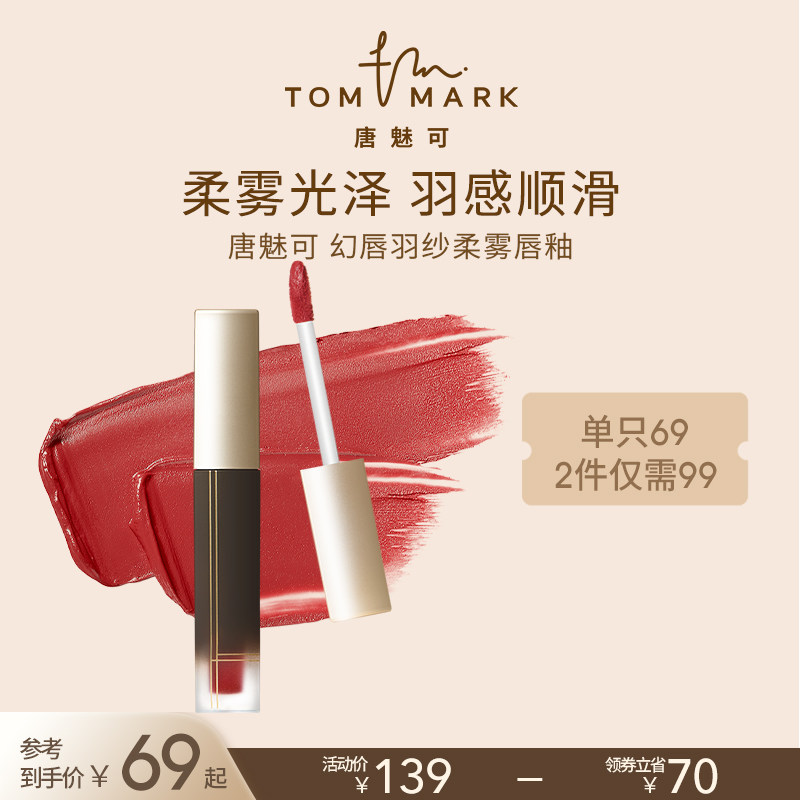 券 70元销量1000tommark唐魅可幻唇羽纱柔雾唇釉女唇彩学生丝绒口红平价小众品牌