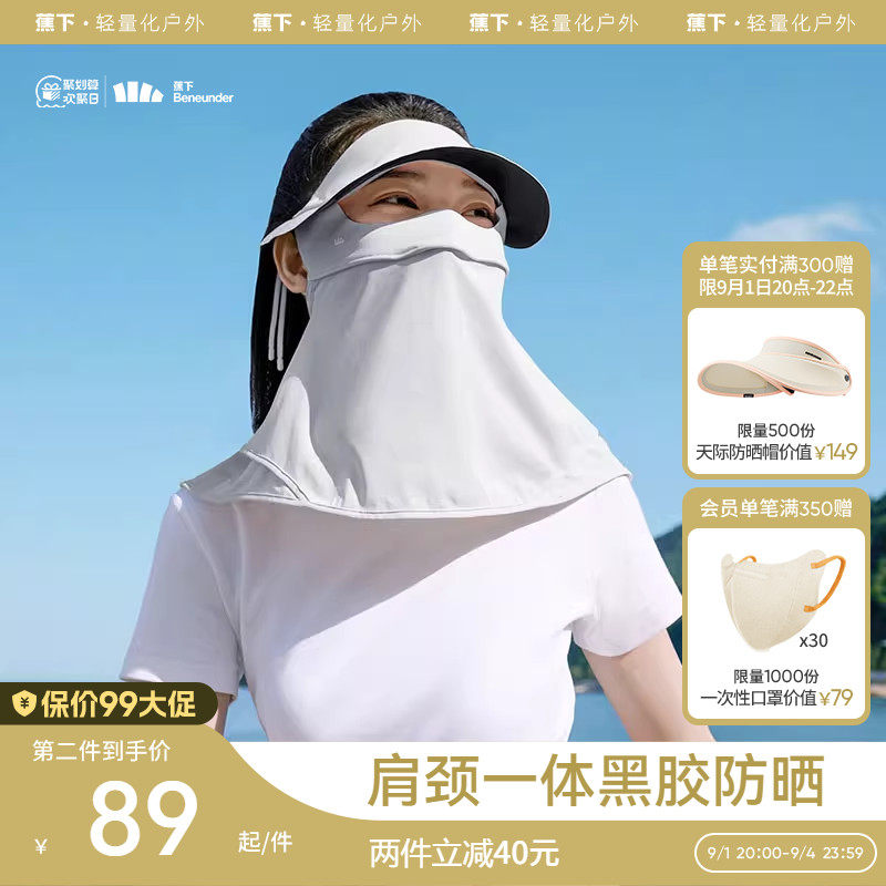 券 20元销量7000蕉下全脸防晒面罩脸基尼帽檐款户外防紫外线口罩开车遮阳防晒透气