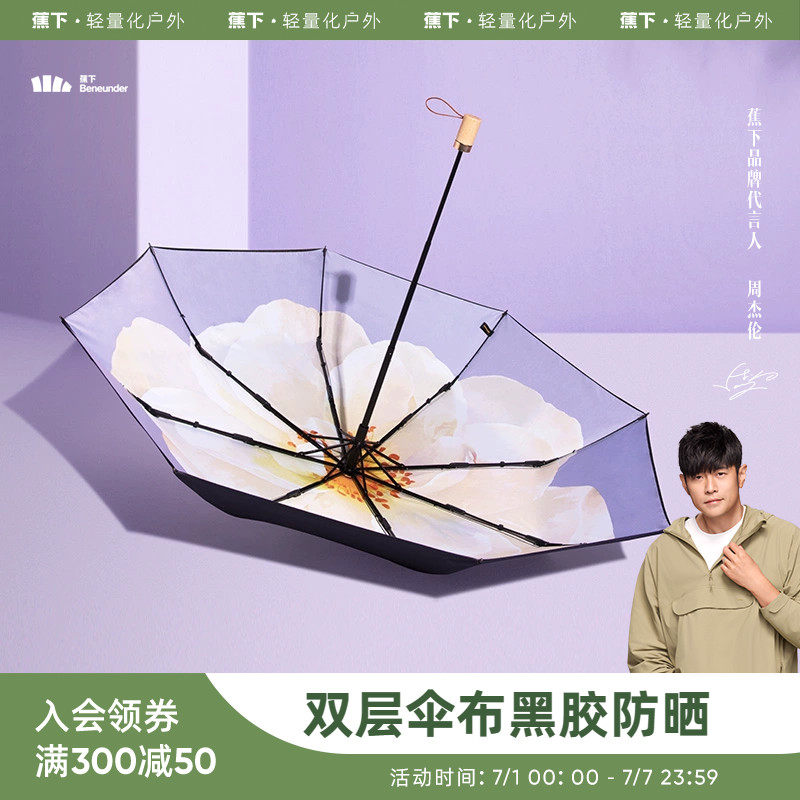 券 20元销量10000蕉下大花小黑伞黑胶防晒遮阳伞双层伞面防紫外线晴雨两用女太阳伞
