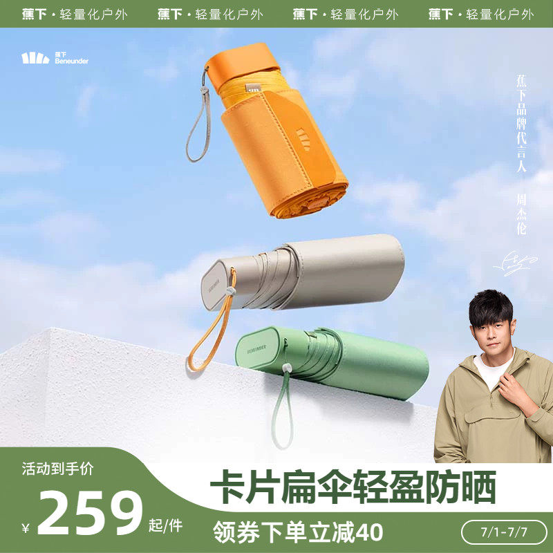 券 40元销量10000蕉下卡片伞BM663晴雨两用防晒伞女防紫外线轻便六折遮阳伞太阳伞