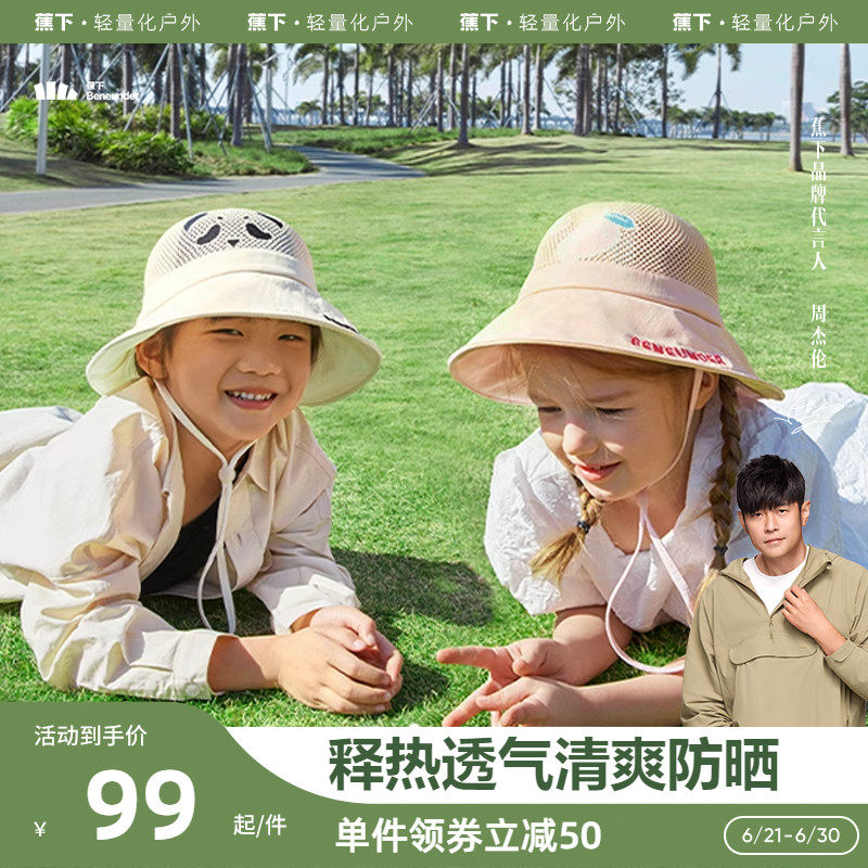券 50元销量1000蕉下儿童渔夫防晒帽春夏女可爱百搭休闲风男太阳帽强防晒遮阳帽子