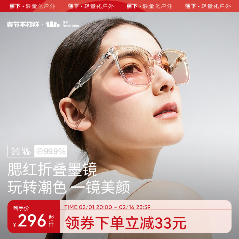 券 35元销量400蕉下折叠墨镜女FO31324腮红方圆大框潮流街拍防晒太阳镜防紫外线