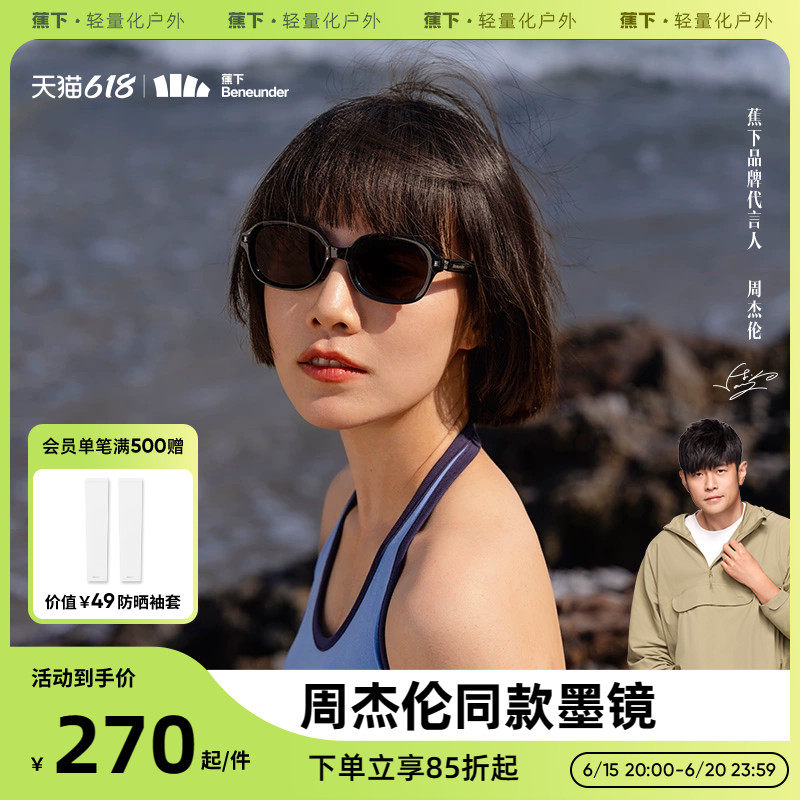 券 50元销量1000【周杰伦同款】蕉下折叠墨镜IF319时尚户外椭圆框女防晒男太阳镜