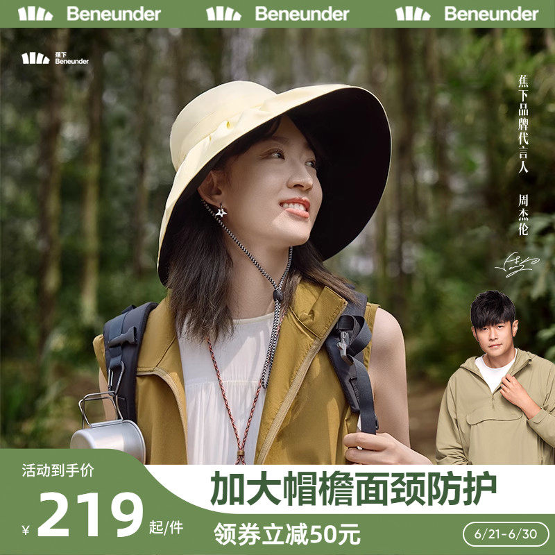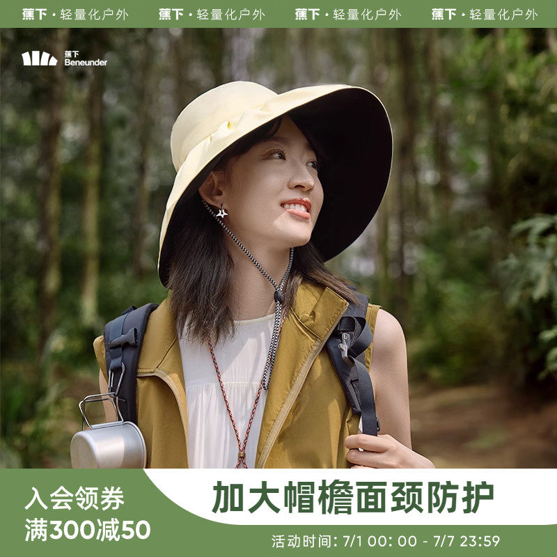 券 50元销量10000蕉下贝壳丝绒黑胶渔夫帽防晒帽超大檐夏遮脸女防紫外太阳帽遮阳帽