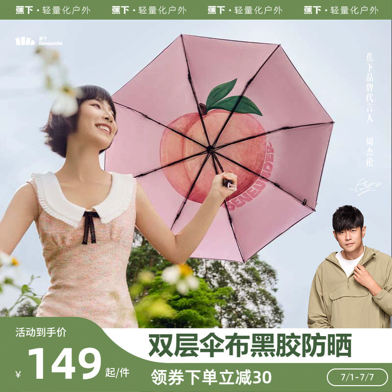 券 33元销量500蕉下旗舰店果趣伞遮阳双层伞面黑胶防紫外线女户外晴雨两用防晒伞
