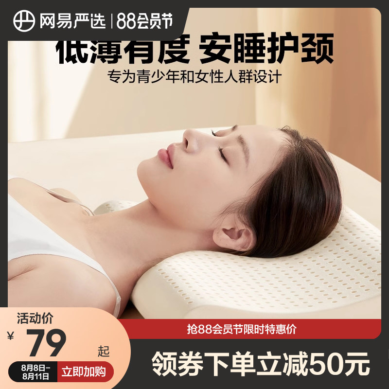 券 50元销量100网易严选乳胶枕头护颈椎学生宿舍专用女士儿童泰国天然乳胶枕芯