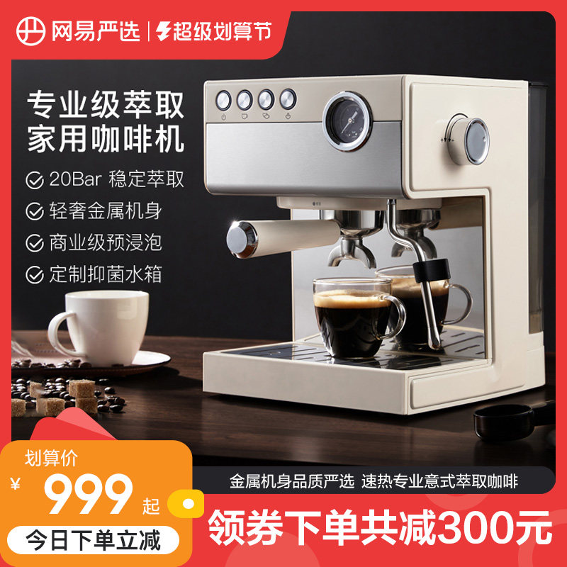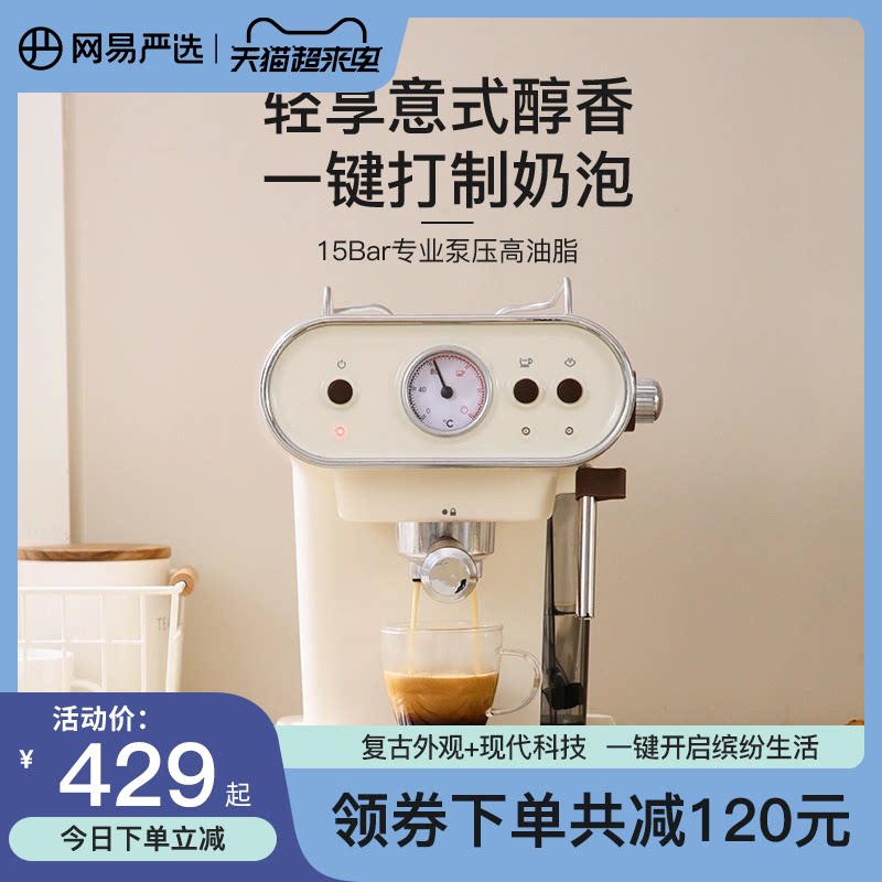 券 300元销量100网易严选意式咖啡机家用小型复古全半自动蒸汽式萃取奶泡金属机身