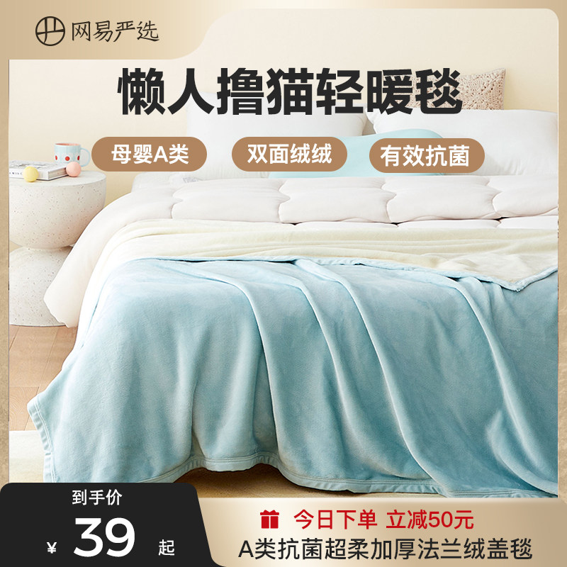 券 50元销量100网易严选珊瑚绒毛毯加厚冬季法兰绒毯子办公室午睡盖毯空调毯学生
