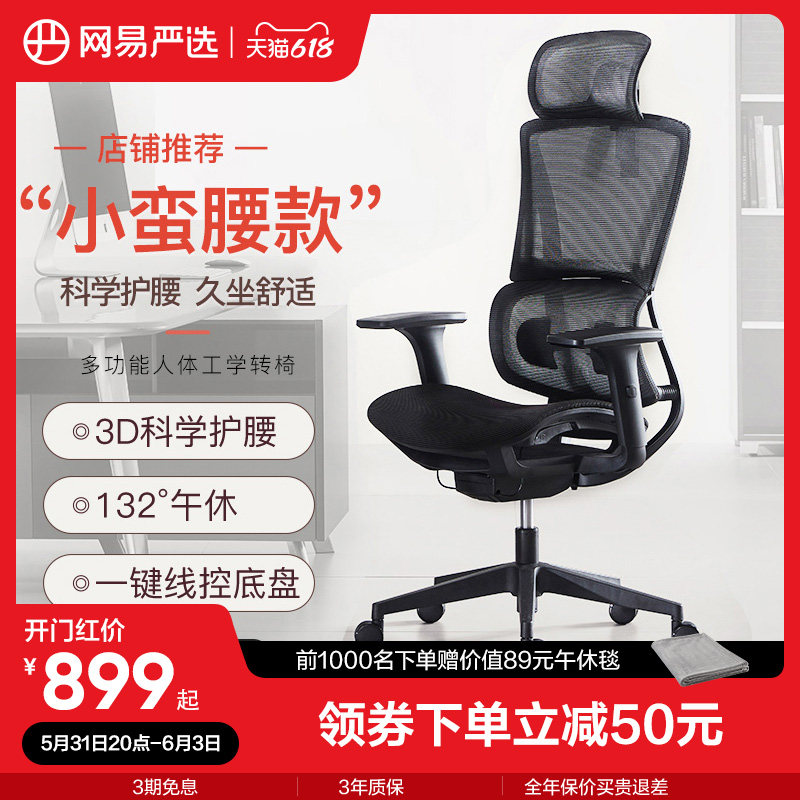 券 700元销量300网易严选人体工学椅小蛮腰家用转椅办公室椅子老板椅多功能电脑椅