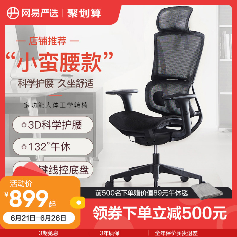 券 500元销量100网易严选人体工学椅小蛮腰家用转椅办公室椅子老板椅多功能电脑椅