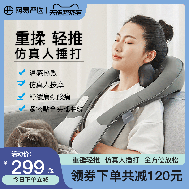 券 130元销量500网易严选肩颈按摩仪颈锥按摩器腰部背部披肩揉捏捶打肩膀送礼物