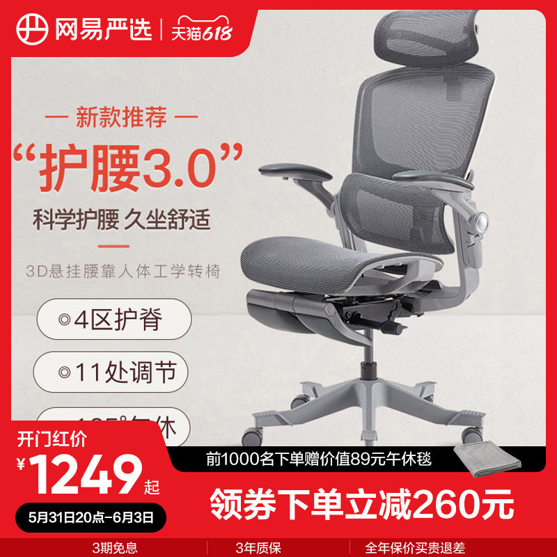 券 300元销量500网易严选人体工学椅子办公椅探索家3D座椅久坐舒服电脑椅电竞椅