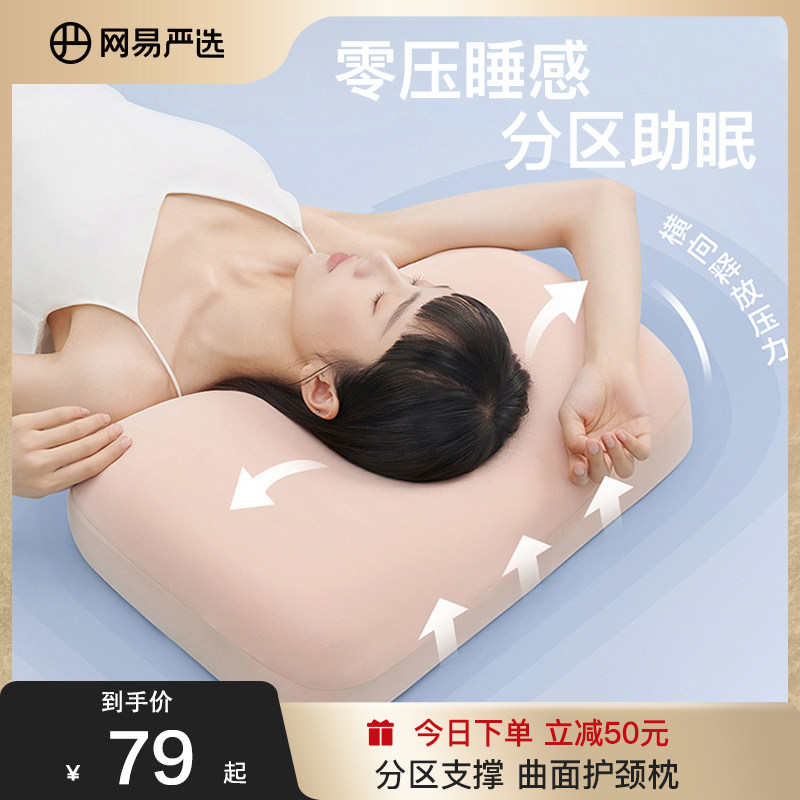 券 50元销量500网易严选枕头护颈椎助睡眠零压生物基记忆棉家用分区抗菌枕芯