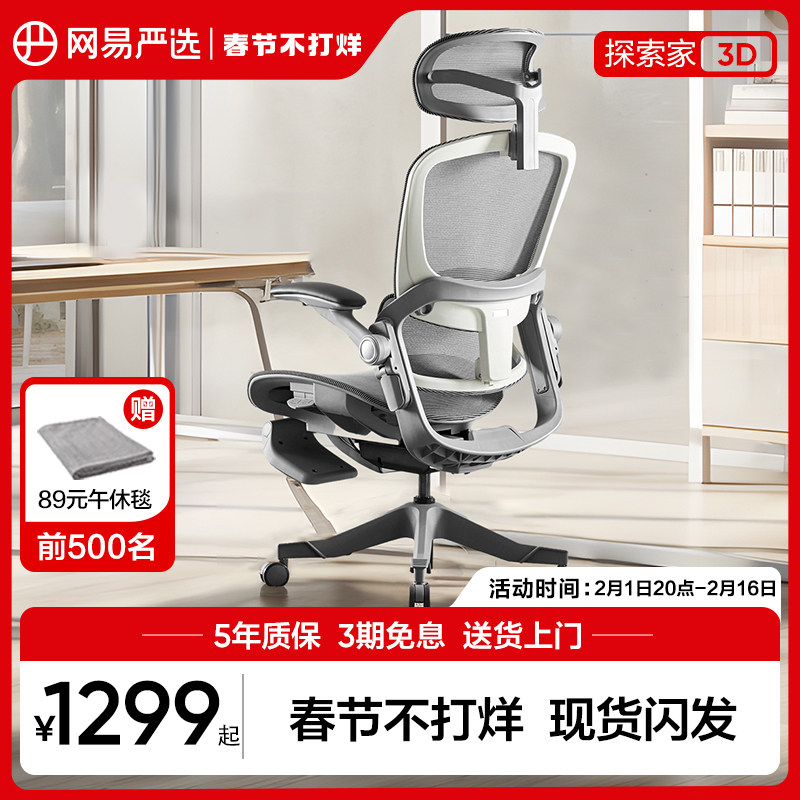 券 400元销量100网易严选人体工学椅子办公椅探索家3D座椅久坐舒服电脑椅电竞椅