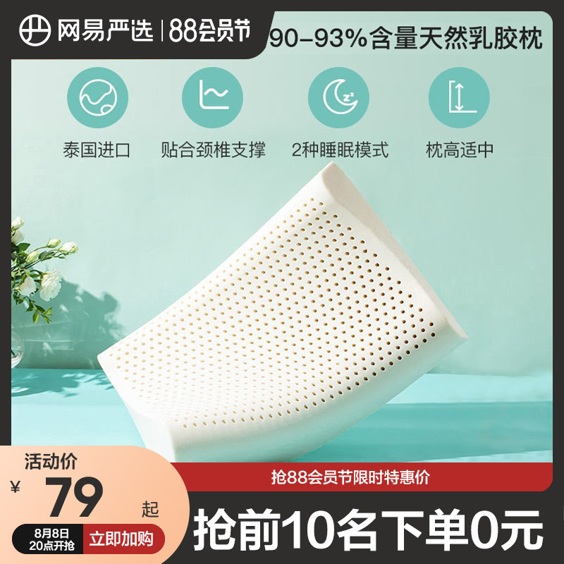 券 60元销量900网易严选乳胶枕天然泰国进口防螨护颈椎助睡眠家用男记忆枕头枕芯