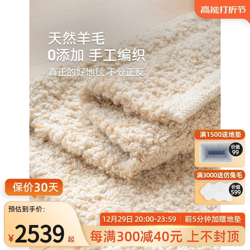 券 20元销量500添加!优立进口手工Woven羊毛轻奢高级客厅地毯卧室冬天2023新款
