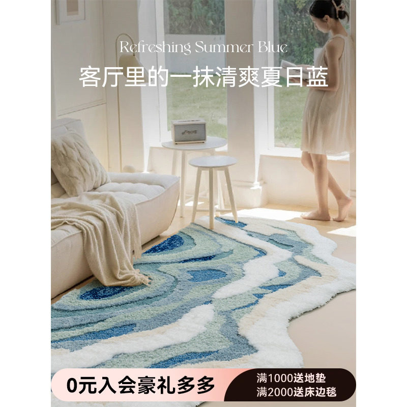 券 20元销量10优立夏天异形不规则卧室床边地毯少女高级感主卧衣帽间客厅地垫