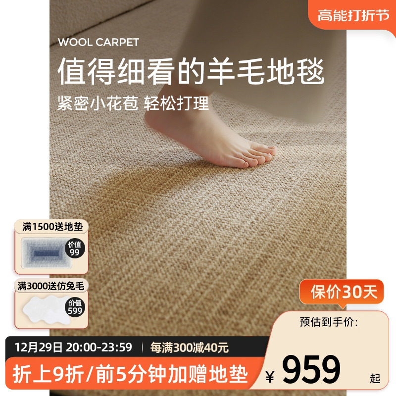 券 30元销量100耐脏羊毛宝藏毯!优立轻奢高级简约纯色客厅地毯卧室冬天2023新款