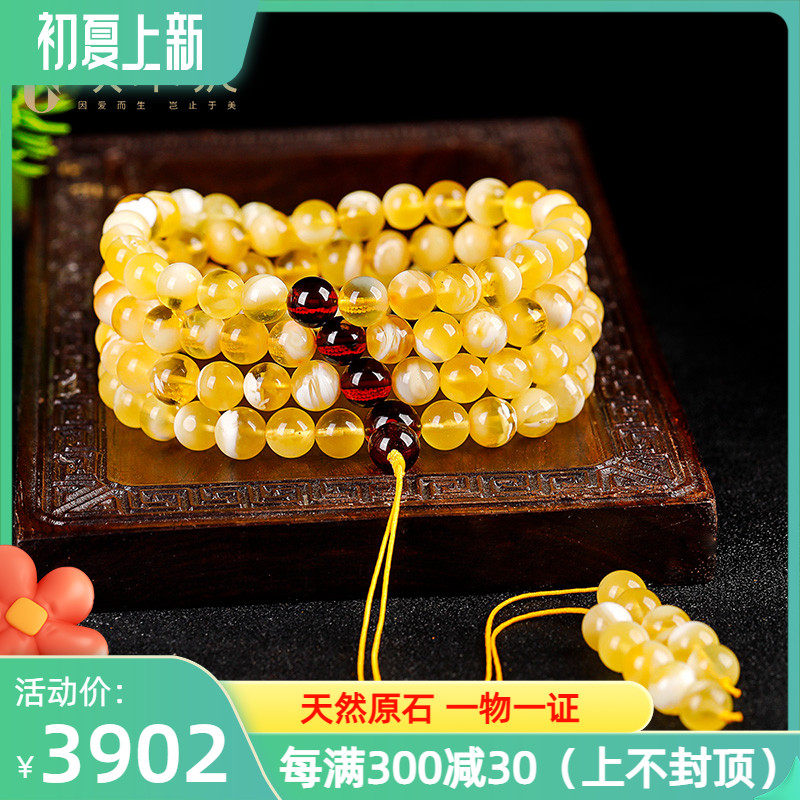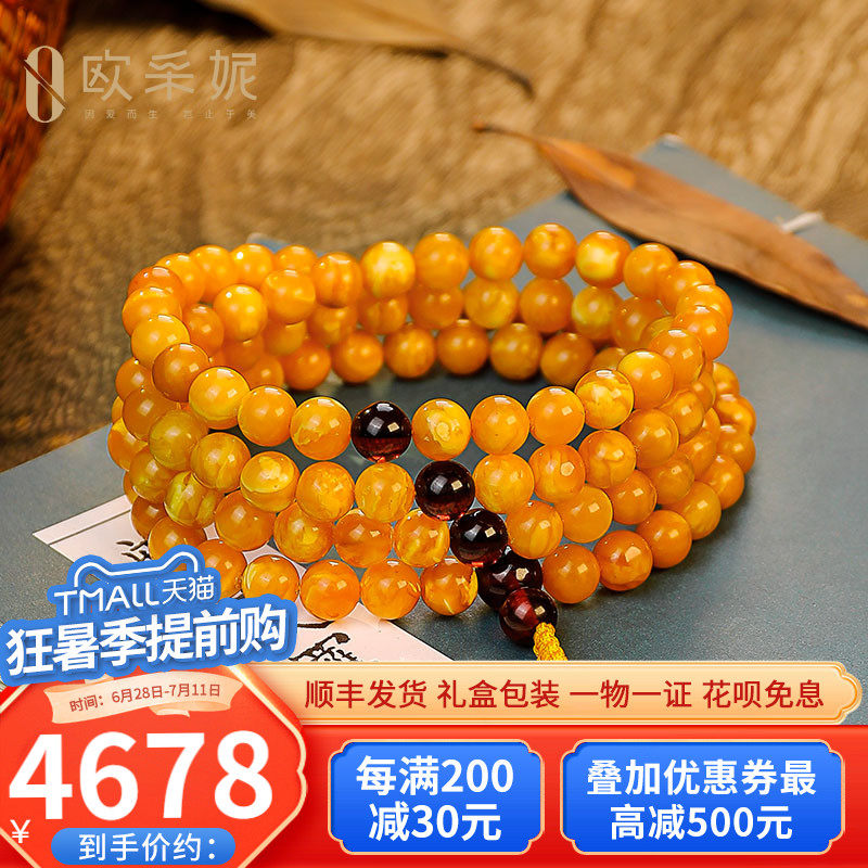 券 300元销量0欧采妮 蜜蜡手串108颗多圈天然白花蜜琥珀无优化手链俄料男女士款