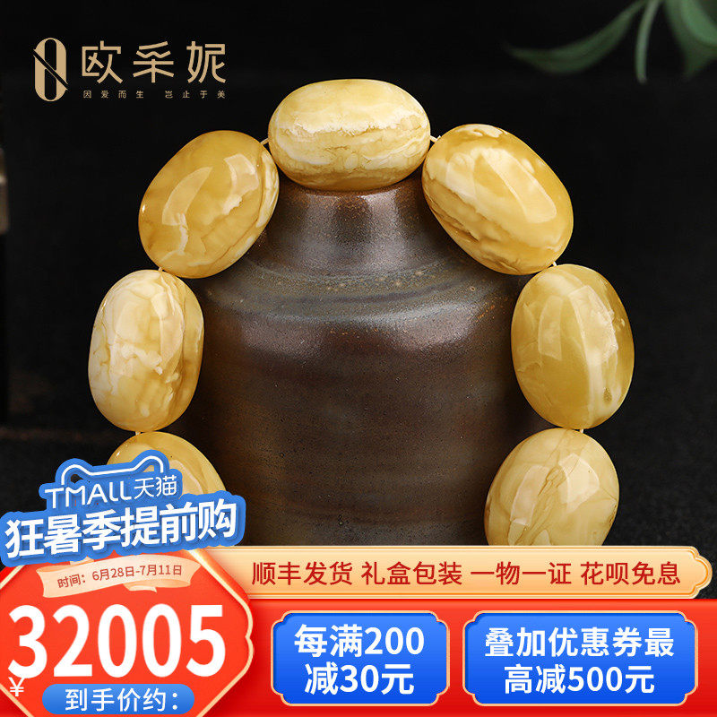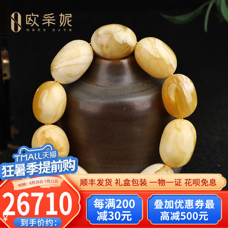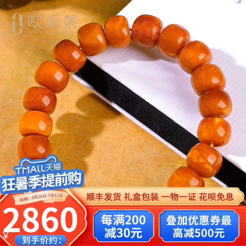 券 500元销量0欧采妮天然蜜蜡手串鸡油黄满蜜无优化妖孽级圆珠琥珀手链男女士款