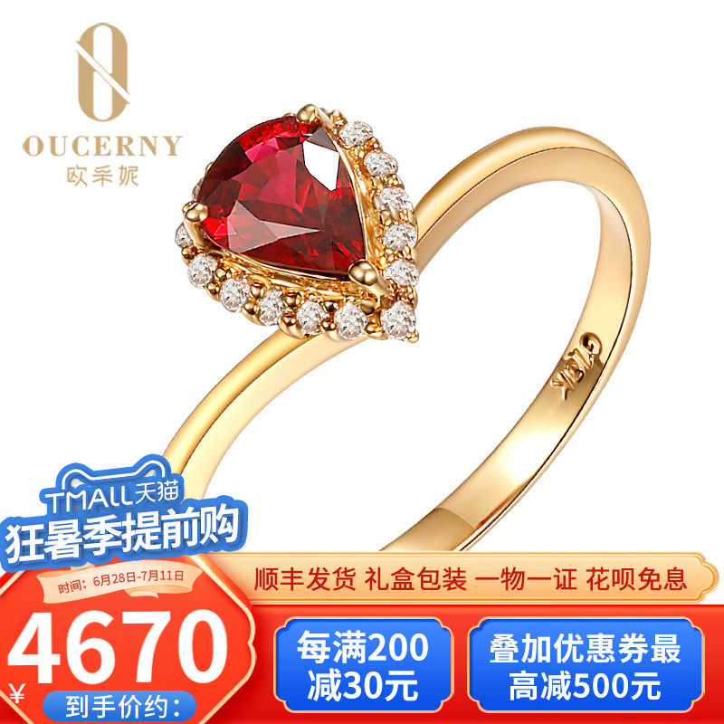 券 400元销量0欧采妮 红宝石戒指 18K玫瑰金镶嵌时尚钻石女戒 彩色宝石戒指女款