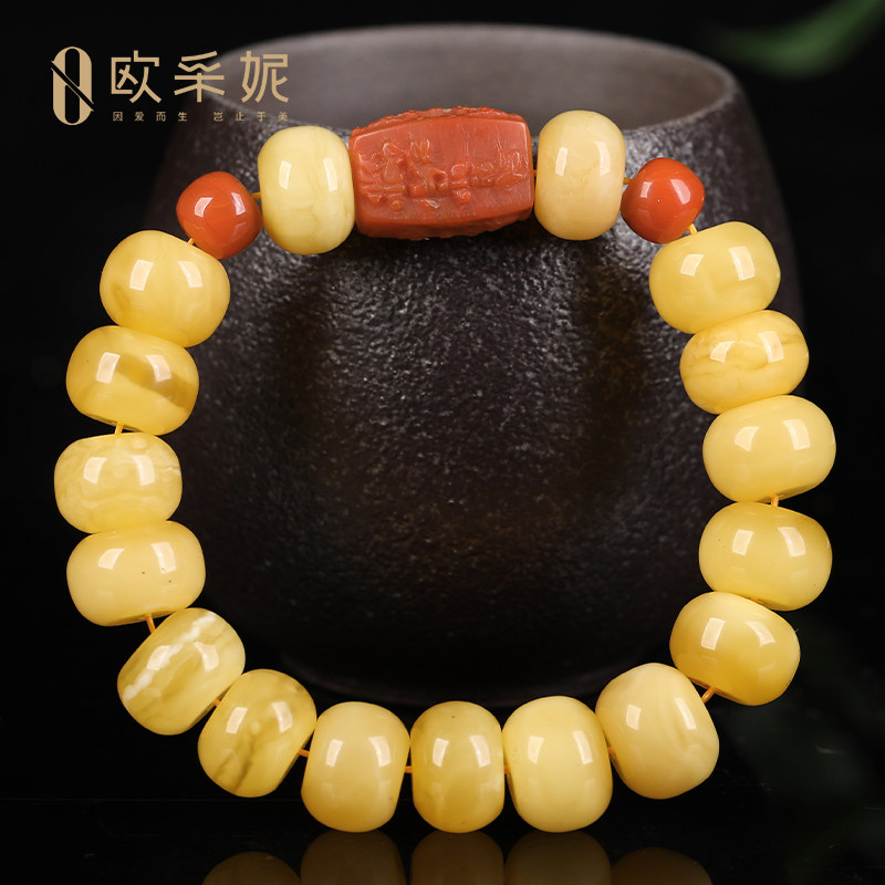 券 300元销量0欧采妮蜜蜡手串天然琥珀蜜蜡桶珠配南红配饰多宝手链波罗的海孤品