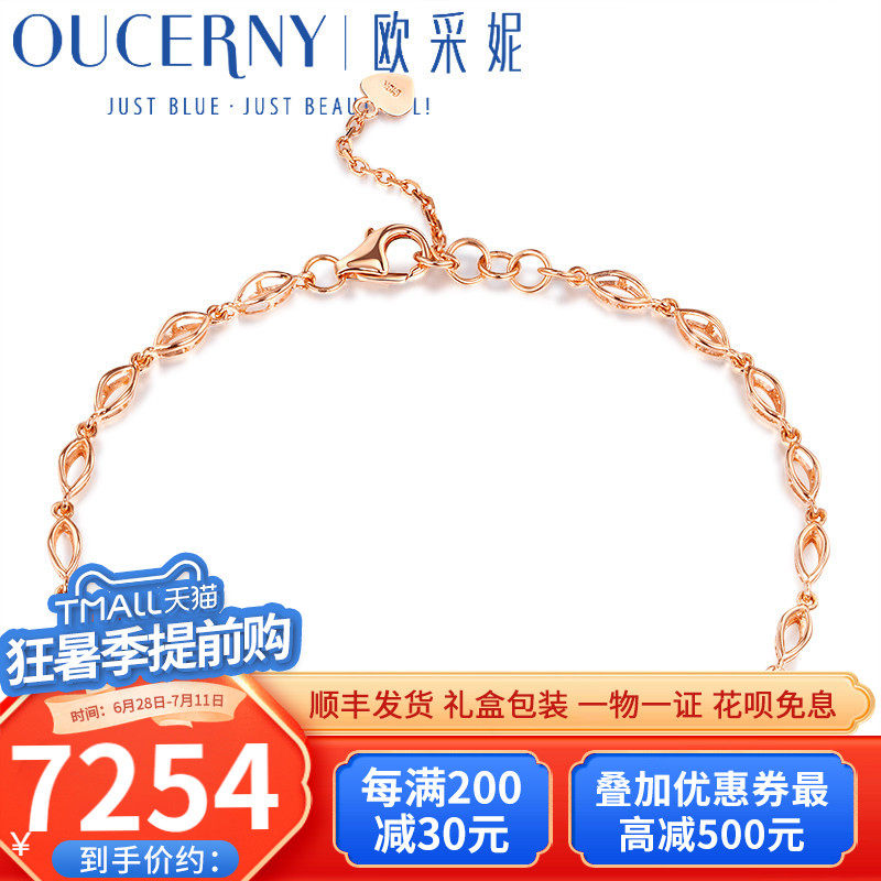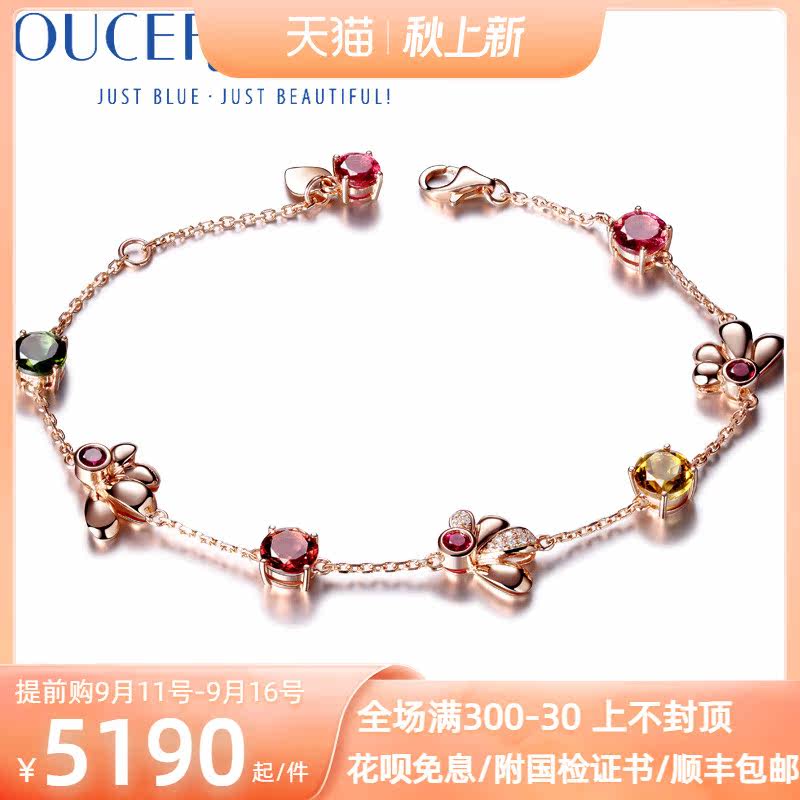 券 600元销量0欧采妮珠宝 碧玺手链18K玫瑰金镶钻石手链 彩色宝石手饰女