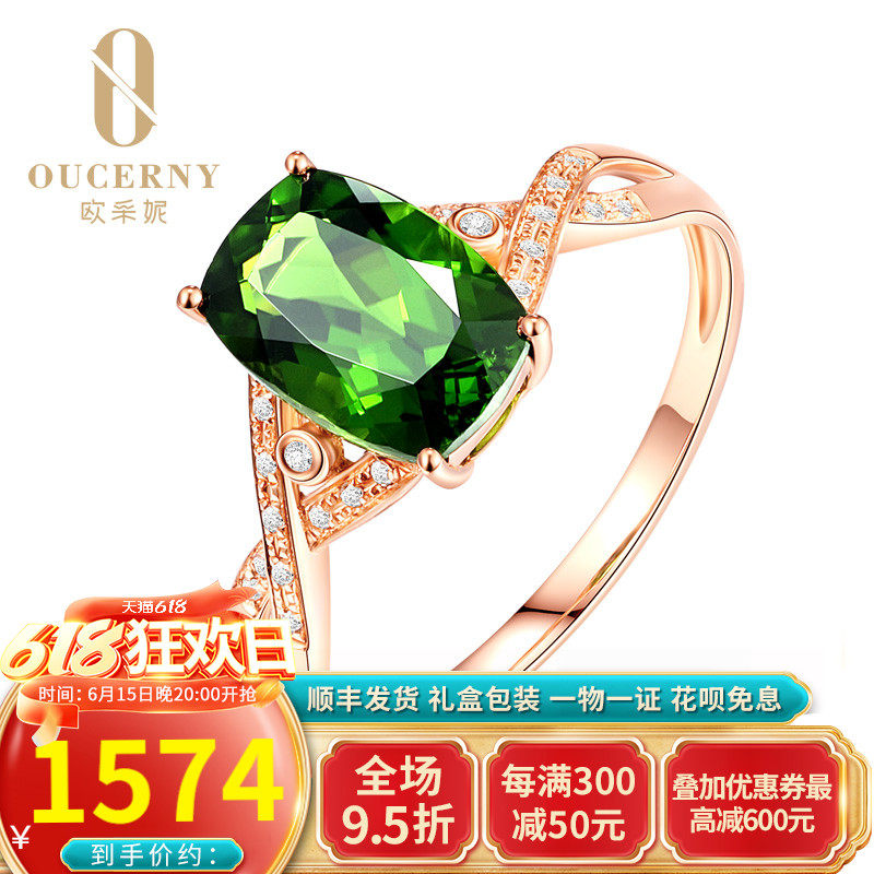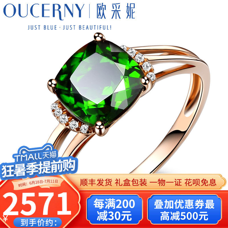 券 200元销量0欧采妮珠宝 18K金透辉石戒指女宝石镶嵌彩宝首饰指环食指大气优雅