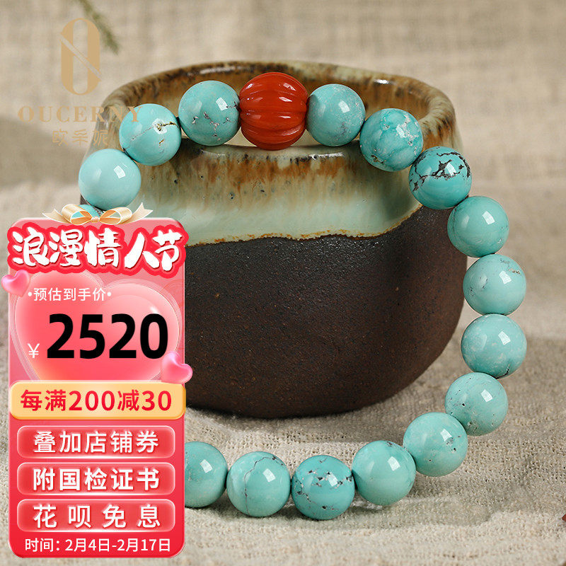 券 500元销量0欧采妮 绿松单圈手串配珠天然琥珀蜜蜡多宝手串南红手链密蜡配饰