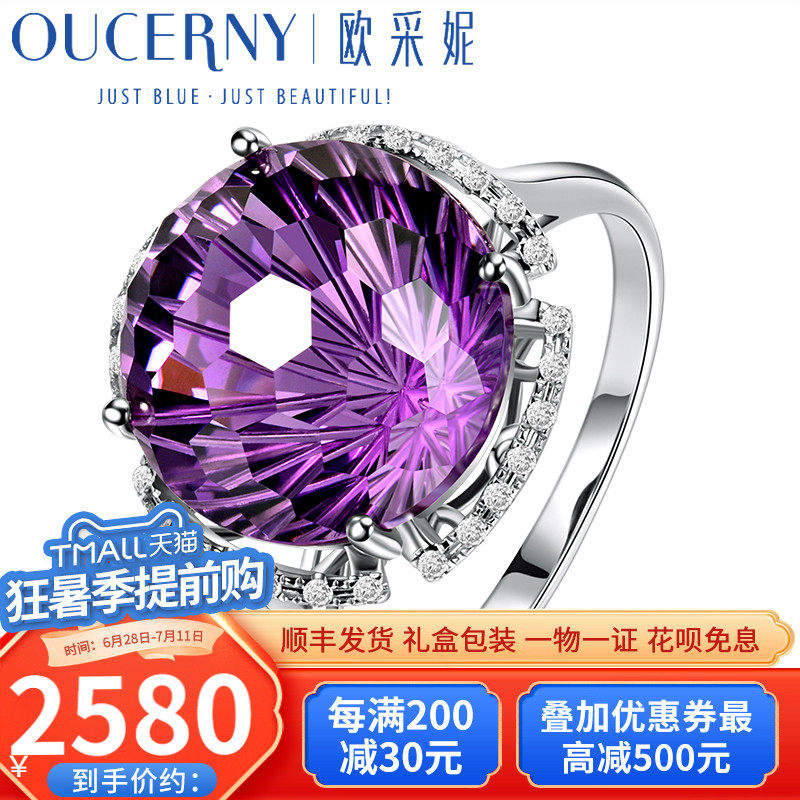券 200元销量0欧采妮 紫水晶戒指 18K玫瑰金镶嵌伴钻戒指 紫晶彩色宝石戒指女款