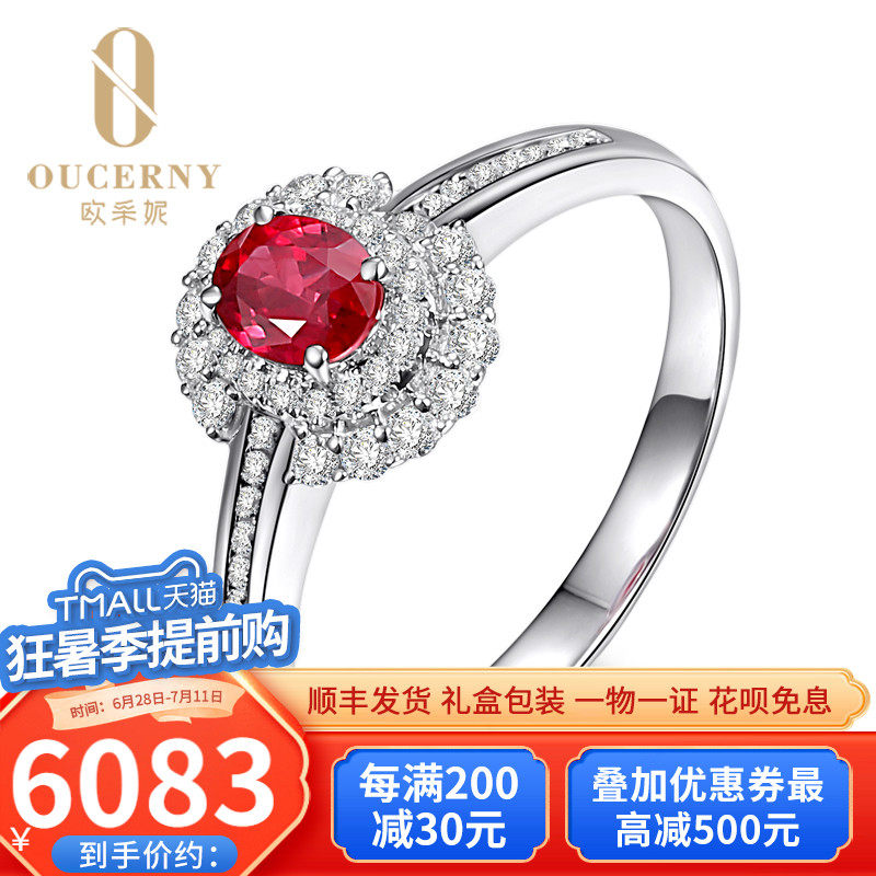 券 500元销量0欧采妮 红宝石戒指 18K白金镶嵌伴钻宝石戒指 彩色宝石戒指女款