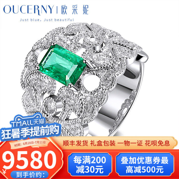 券 500元销量0OUCERNY/欧采妮哥伦比亚天然皇室祖母绿18K金戒指女彩色宝石钻戒