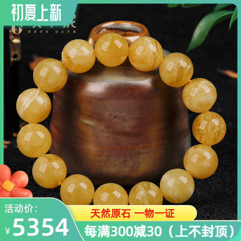 券 600元销量0欧采妮蜜蜡手串【珍藏品老蜜蜡孤品】天然满蜜圆珠琥珀单圈手链